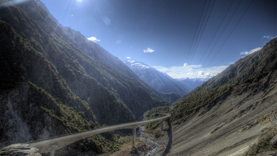 • Stop at Otara Viaduct Lookout for panoramic views of the Southern Alps